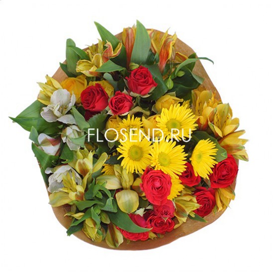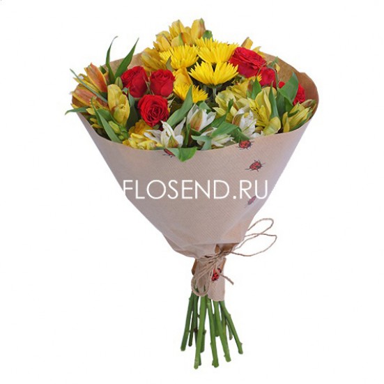 Букет из хризантем и кустовой розы и альстромерий в Серове